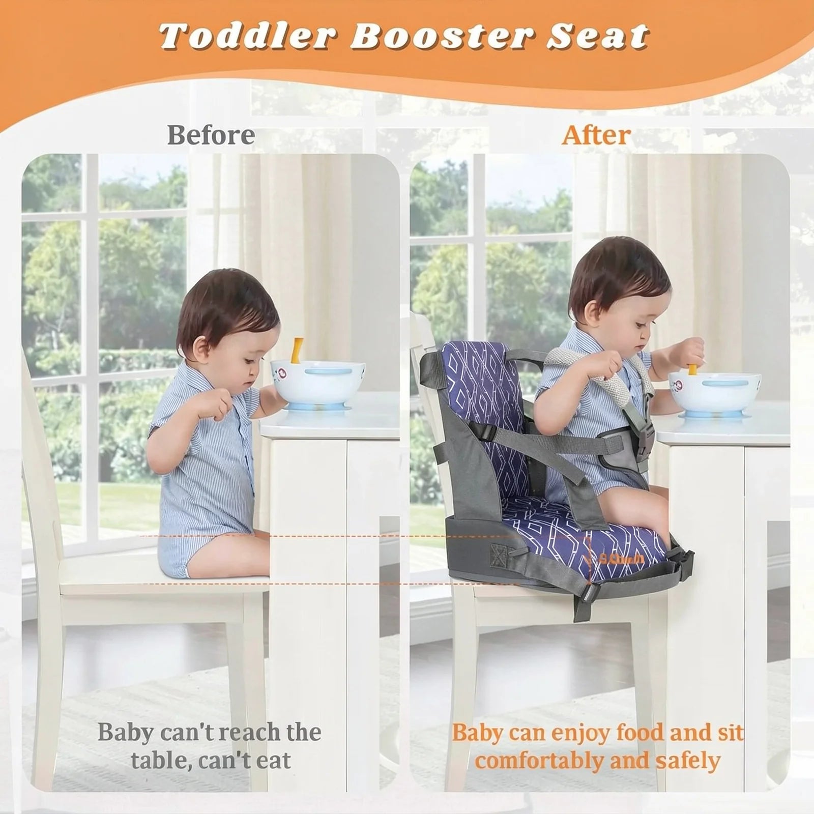 Designet med fokus på sikkerhed er denne Bærbar Foldbar Baby Spisestol udstyret med fire justerbare fastgørelsesstropper og en sikker sele, der holder sædet stabilt på de fleste spise- og køkkenstole. Den skridsikre silikonebund forhindrer, at sædet glider, selv på glatte overflader, så du kan nyde måltidet med ro i sindet.