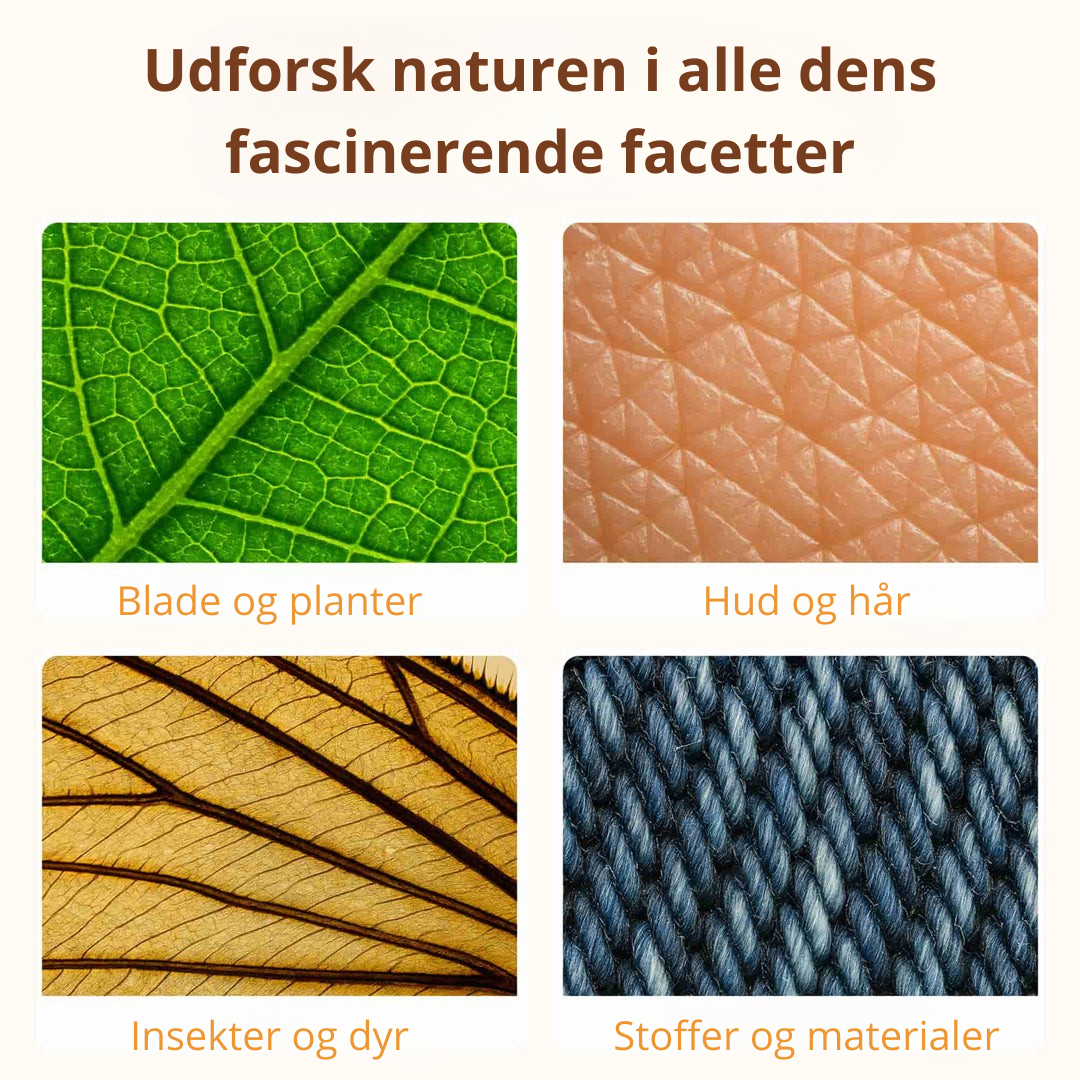 Med et bærbart lomme digitalt mikroskop kan børn og nysgerrige sjæle forvandle hverdagen til et spændende forskningsprojekt. Uanset om I er hjemme, i haven eller på ferie, åbner mikroskopet døren til en verden fuld af detaljer, som normalt er usynlige for det blotte øje.