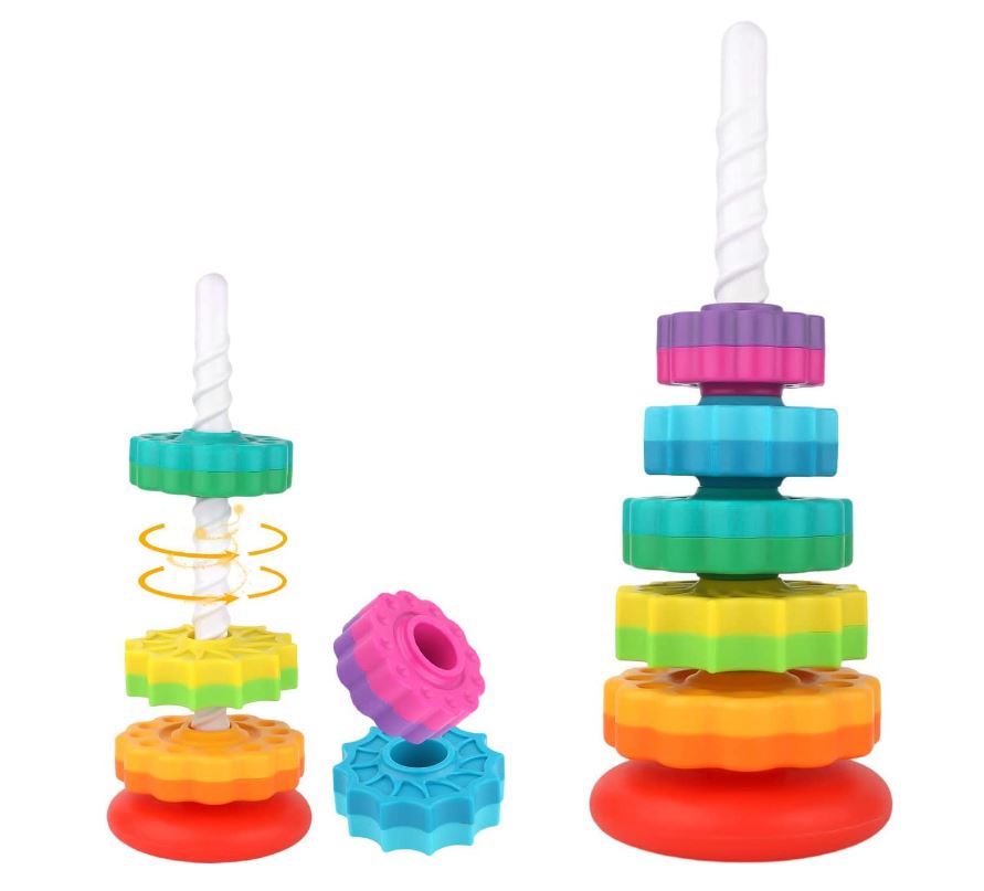 Oplev en farverig og engagerende måde at udvikle dit barns finmotorik og kognitive færdigheder på med Rotating Tower.