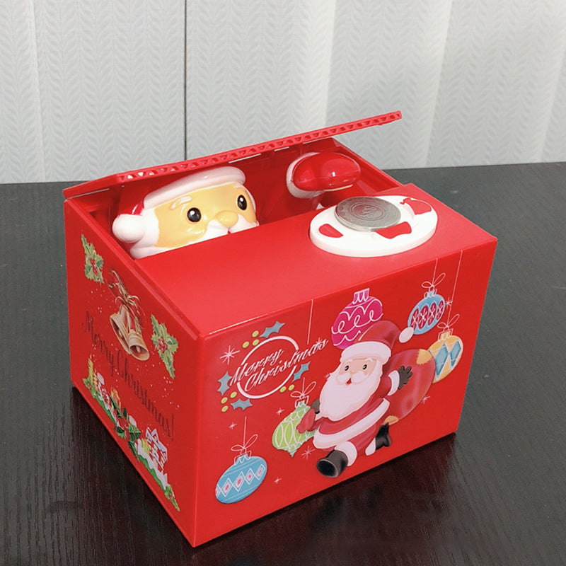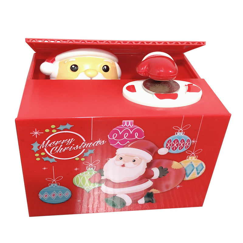 - 🎅【Grappy design】. Når mønten er på forsiden af møntmærket, åbner julemanden i æsken automatisk låget og tager mønten med ind i æsken. En unik pengekasse i julestil til børn med nye produkter. Den perfekte nyhedsgenstand.