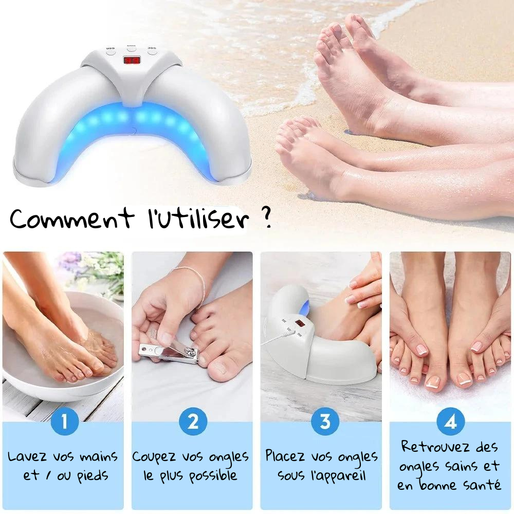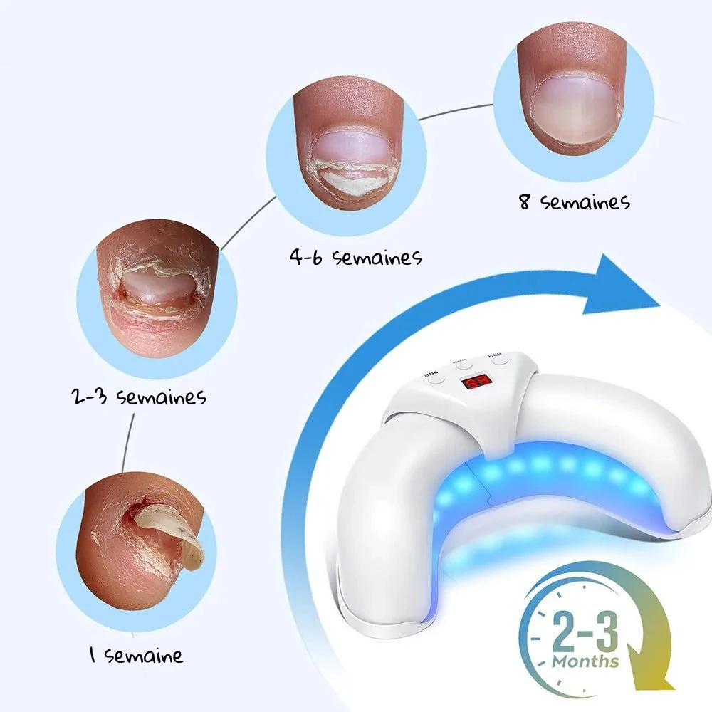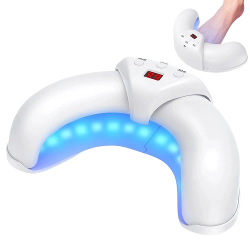 Denne enhed kombinerer 22 kraftfulde LED-lys med blå og infrarød bølgelængde, som sikrer grundig og skånsom behandling. Vælg blot varigheden (30, 60 eller 90 sekunder), placer neglen, og lad teknologien gøre arbejdet – helt uden bivirkninger, smerte eller varmeudvikling i huden.