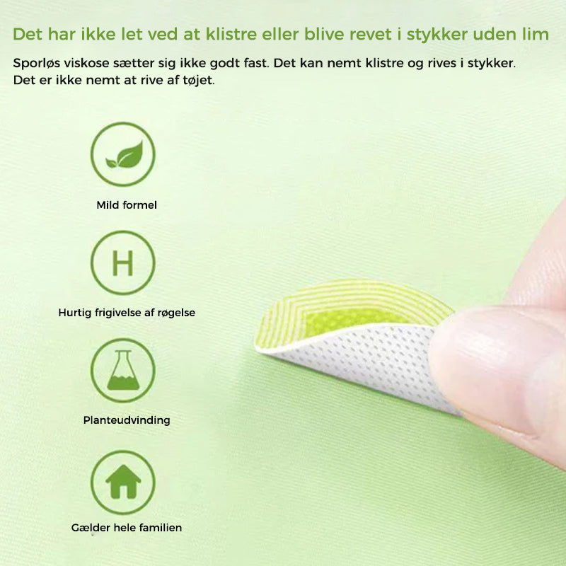 Let at klæbe fast og rive af: Klæbemidlet har ikke let ved at falde af, kan rives af uden at efterlade lim, sporløs lim uden at rester, kan klæbes på og rives af efter ønske; Vil ikke skade tøjet.