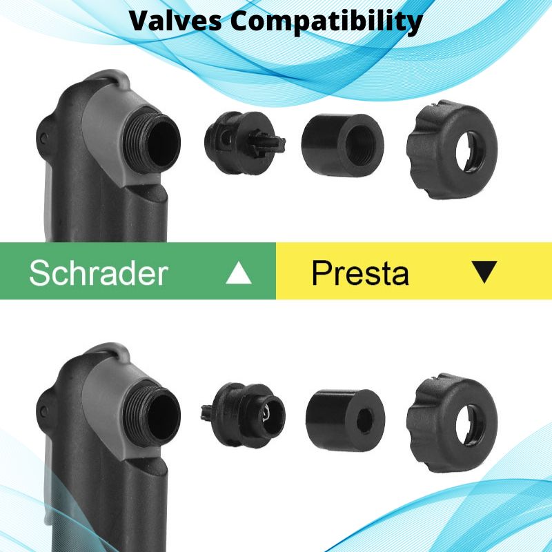 Pumpen er kompatibel med både Presta- og Schrader-ventiler, så du nemt kan skifte mellem cykeltyper uden ekstra udstyr. Med en maksimal kapacitet på op til 160 PSI, kan du hurtigt pumpe dæk, bolde eller legetøj – hjemme eller på farten.