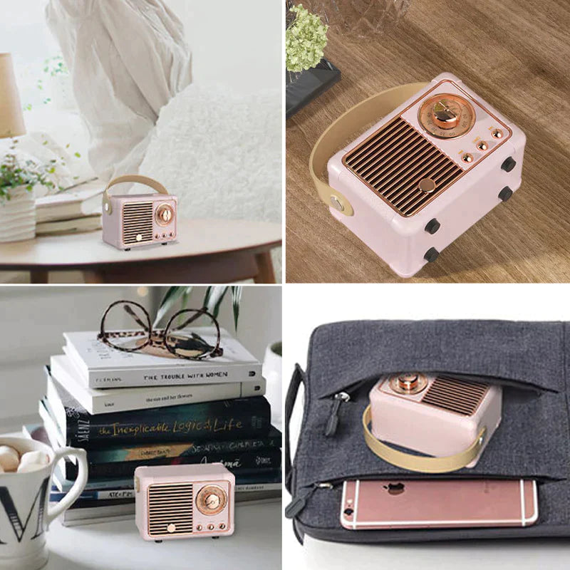 【Bærbart & Retro Design i ministørrelse】 Super sød, fantastisk lille højttaler til dit værelse. Du kan have den med alle vegne, hvilket gør det nemt at lytte til musik. Tag udenfor og lyt til alle de gamle hits mens du står og laver mad, er til fest, laver havearbejde, til garagen, bålet, eller til vandre-, cykel- og strandturene. Fantastisk som dekoration til hjemmekontorets eller som en gaveidé.