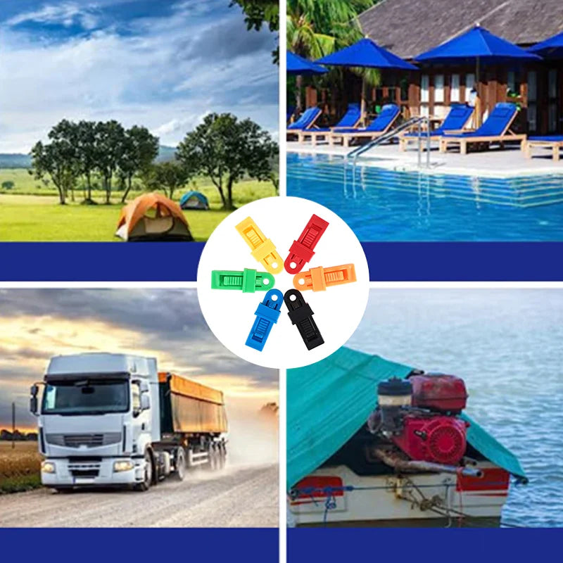 - Bred anvendelse - Pga. deres stærke holdekraft kan klemmerne bruges til fortelte, campingvogne, presenninger, stokke og bådovertræk, velegnet til udendørs camping, sejlads eller picnic.