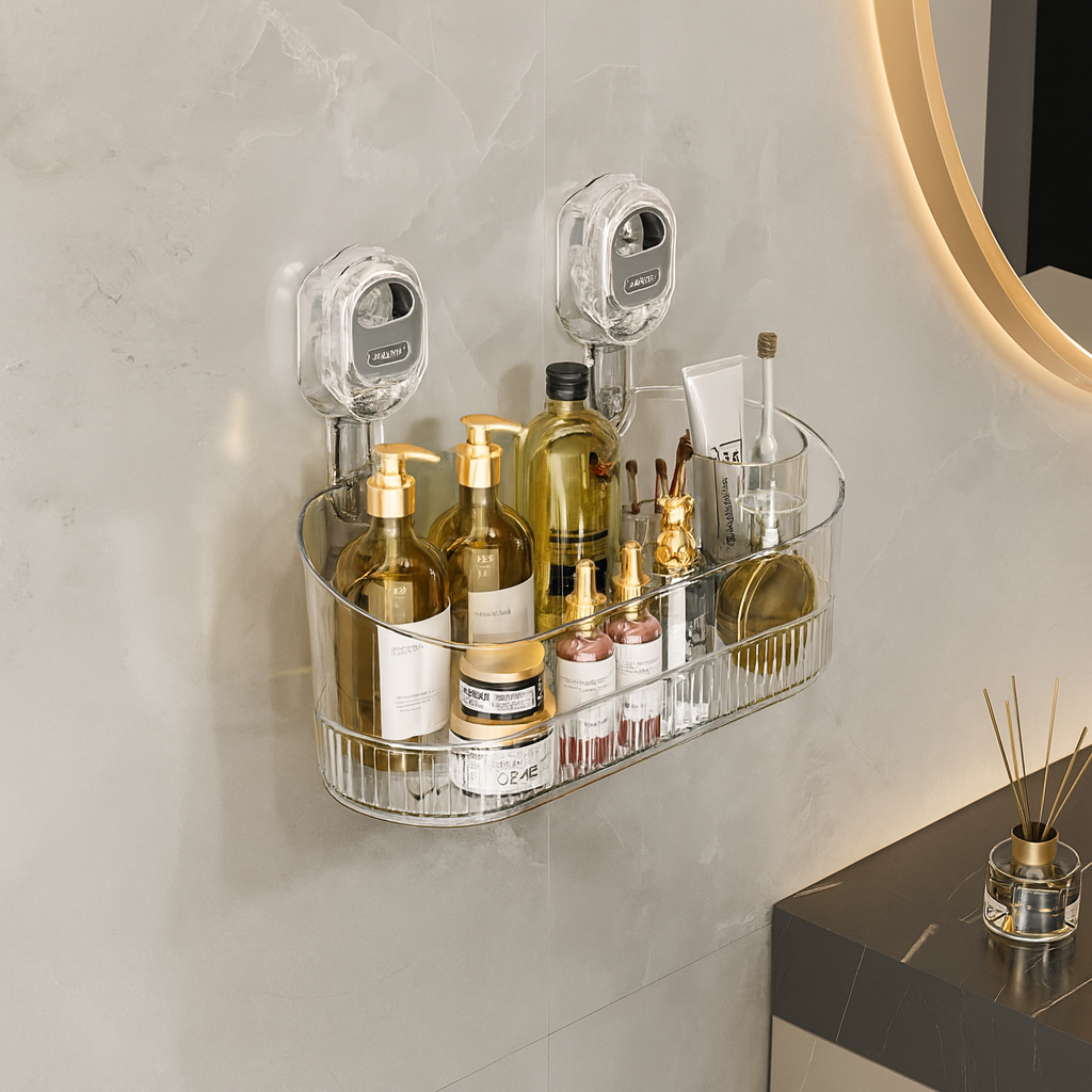 Er du træt af kaos i badeværelset, køkkenet eller brusekabinen? Flasker, sæber og småting hober sig hurtigt op – men traditionelle hylder kræver boring, efterlader grimme huller eller falder ned efter få dage. Med Self Adhesive Suction Bathroom Suction Wall Shelf får du en hylde, der sidder som støbt – helt uden værktøj, skruer eller lim.