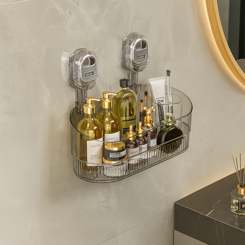 Hylden er perfekt til badeværelset, brusekabinen, køkkenet eller toilettet, hvor du mangler smart opbevaring. Med sit moderne og diskrete design passer den ind i enhver indretning – og du kan vælge mellem transparent, grå eller guld.