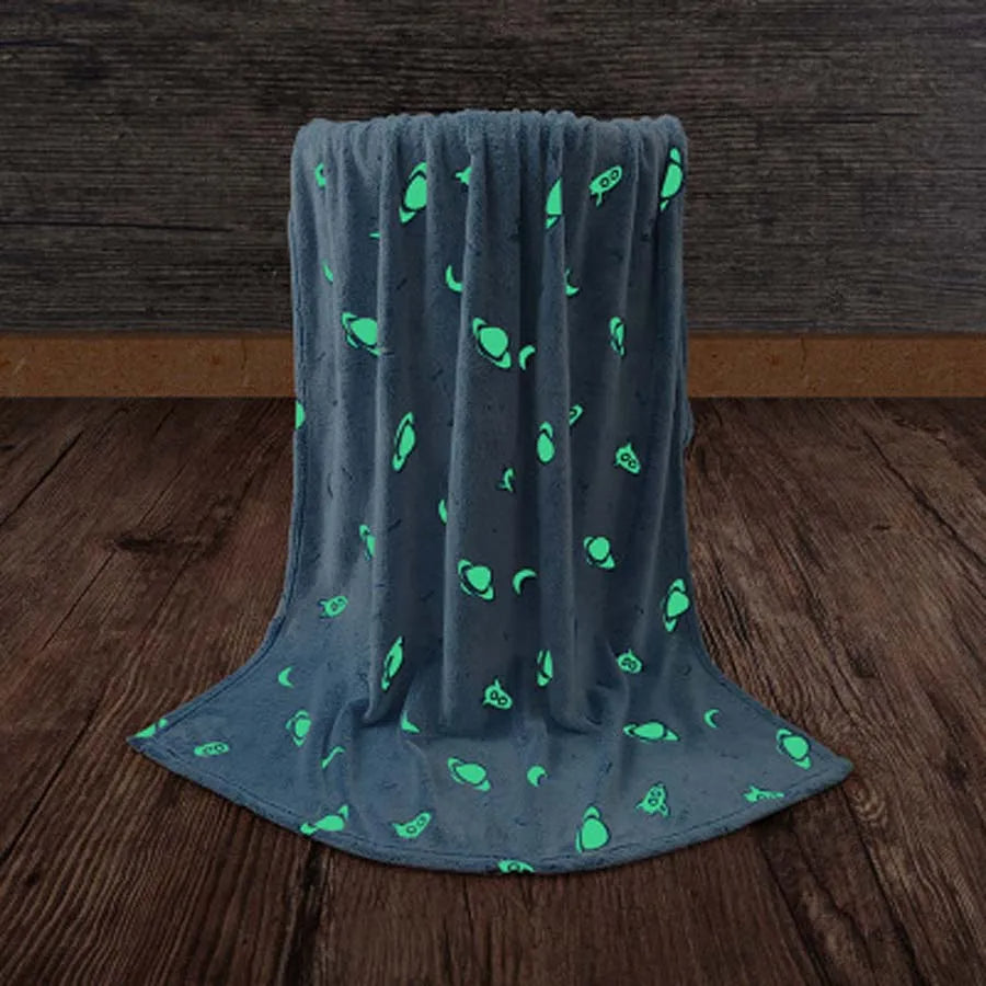 Banket glow er ikke bare et tæppe; det er en portal til stjernerne! Forvandl dit barns sengetid til et himmelsk eventyr med dette plys og lysende vidunder. Tæppet er lavet af selvlysende materialer og udsender et beroligende lysegrønt skær om natten, så sengetid bliver en magisk og beroligende oplevelse.