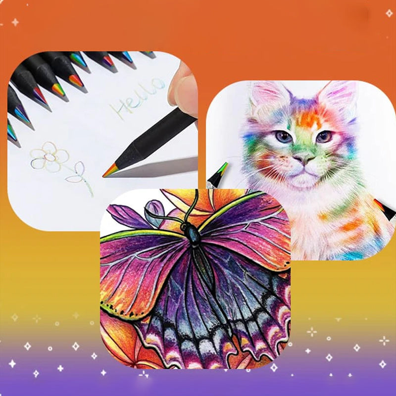 🌈 Flerfarvet magi: Hver blyant er ekspertudviklet med lag af genbrugspapir, der leverer højpigmenterede, flerfarvede streger, der bringer dit kunstværk til live med en finurlig regnbueeffekt. Intet behov for kompleks farveblanding - bare tegn og se, hvordan farverne blander sig smukt på siden.