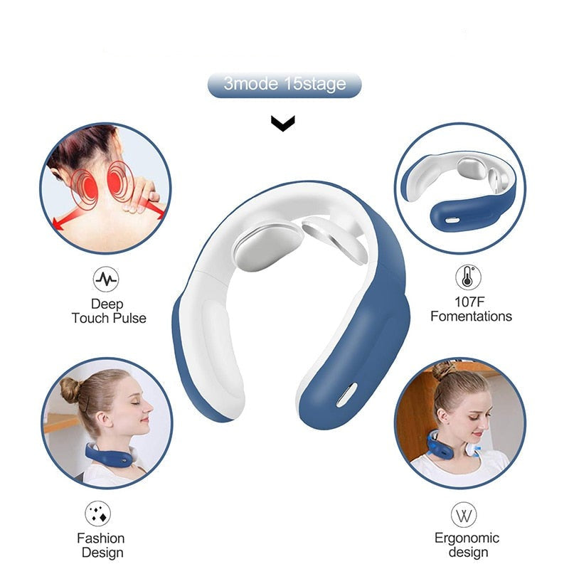 Denne Smart Intelligent Neck Massager lindrer smerte, knuder og muskelspændinger ved at simulere ægte menneskelig massage for den bedste massageoplevelse. Forbedrer musklernes ydeevne ved at mindre smerte og træthed omkring din hals.