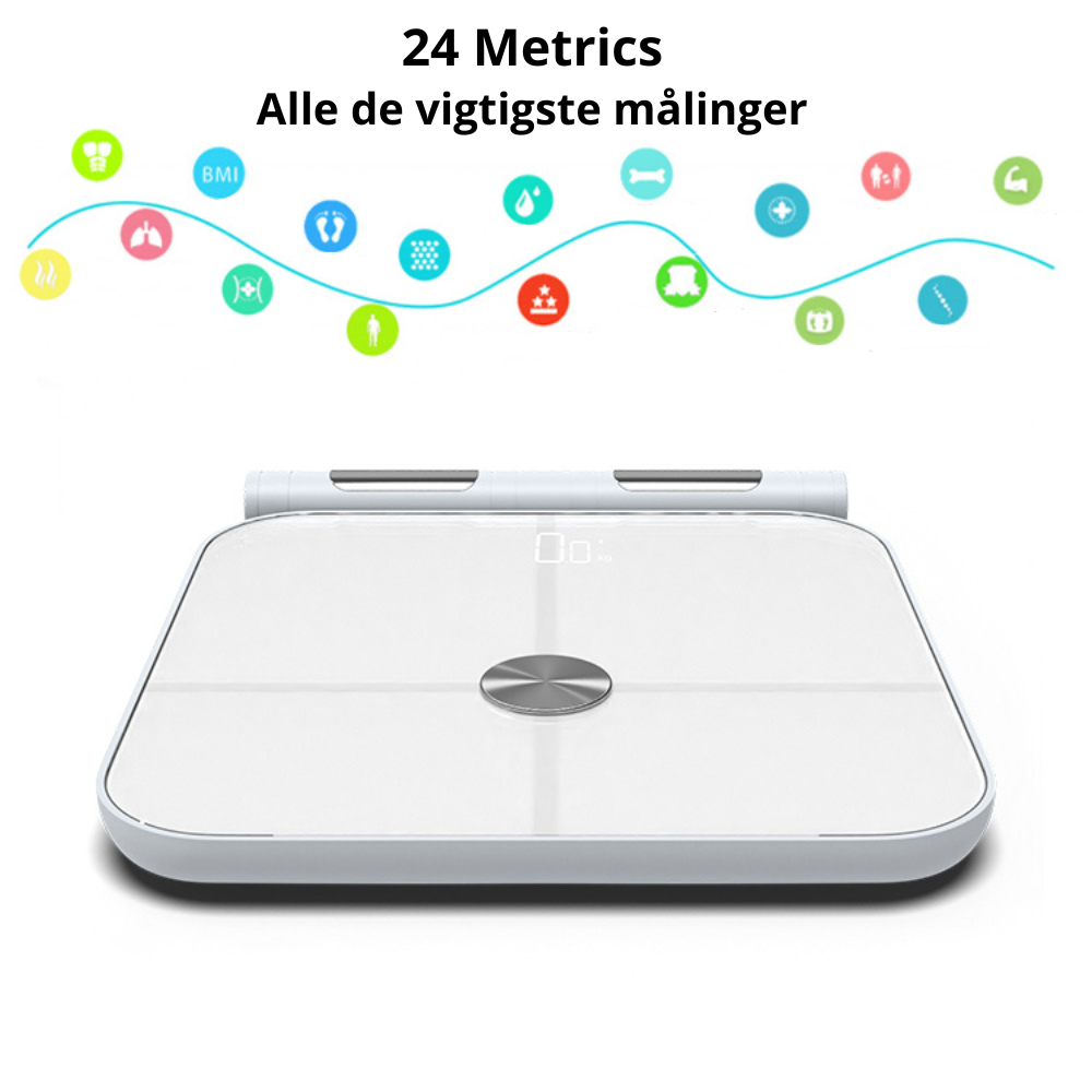- ⚖️ Præcis kropsanalyse: Mål 24 kropsparametre med op til 95-100 % nøjagtighed.