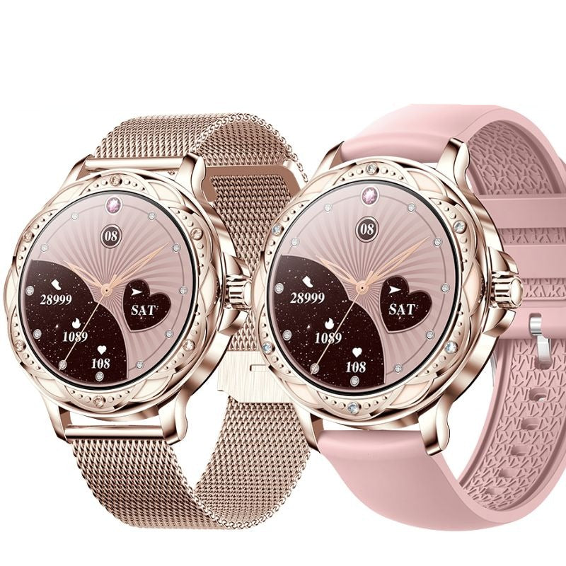 Vigtige målinger: Med vores avancerede teknologiske ur kan du præcist overvåge afgørende målinger såsom 24-timers hjertefrekvensvariabilitet, iltmætning i blodet, systoliskt og diastoliskt blodtryk samt følge menstruationscyklusdata for omfattende sundhedsindsigter.