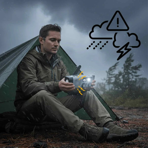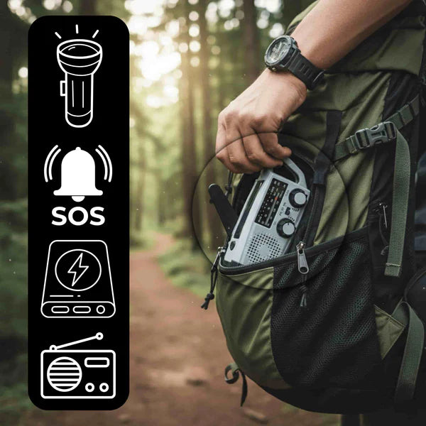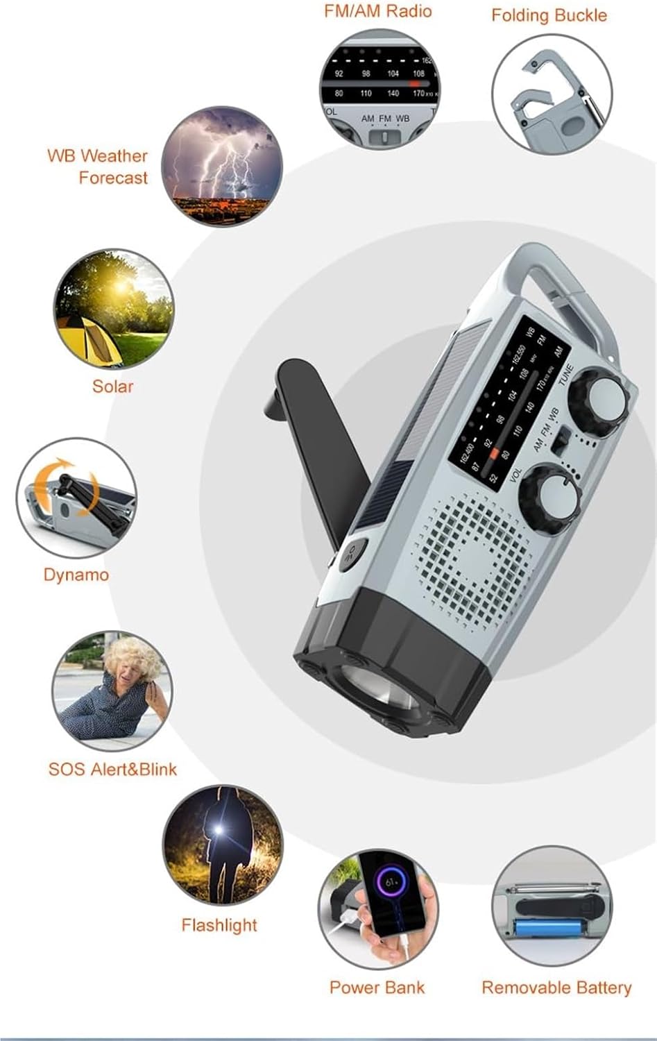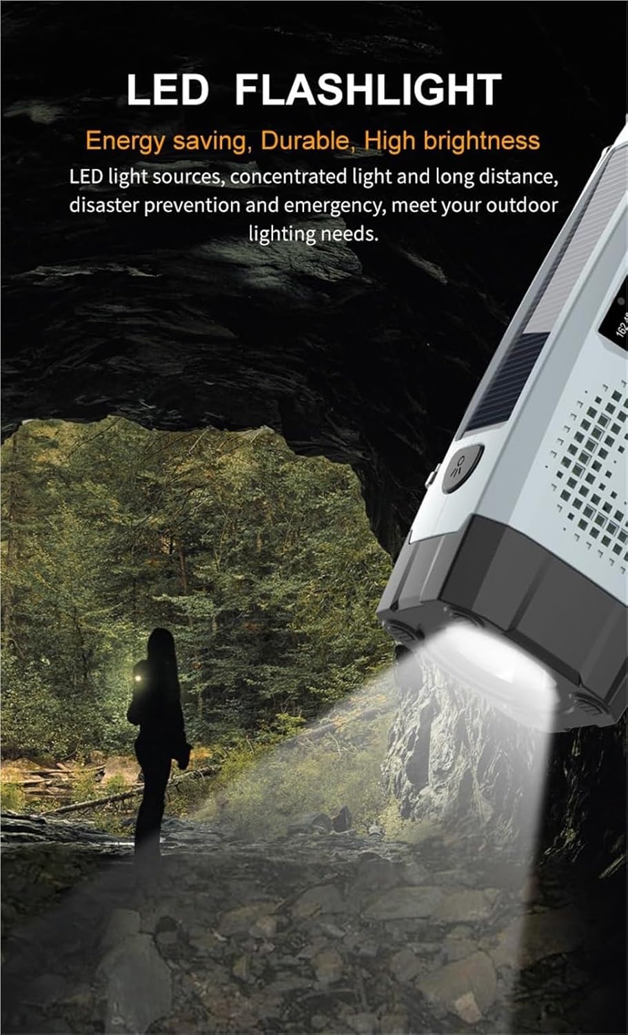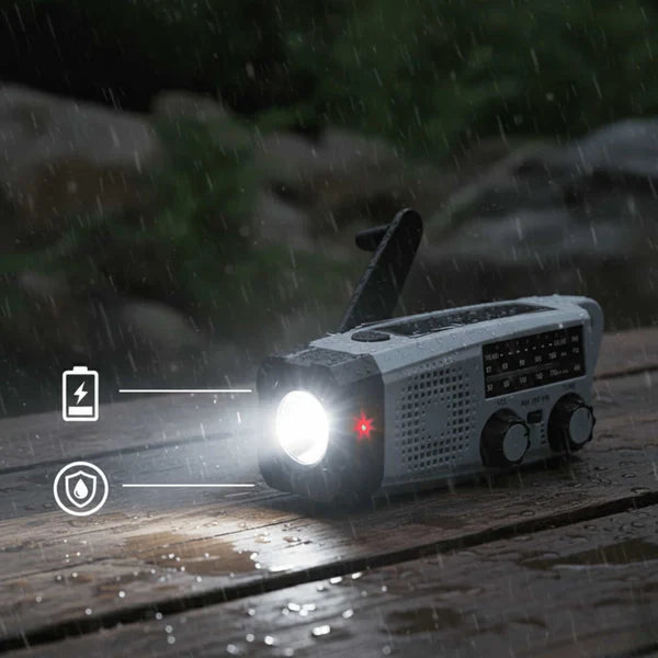 Denne soldrevne nødradio er bygget til at modstå naturens udfordringer. Den er stødresistent, kompakt og udstyret med karabinhage, så du nemt kan fastgøre den til din rygsæk. Perfekt til camping, rejser, overlevelsesture og nødsituationer i hjemmet.