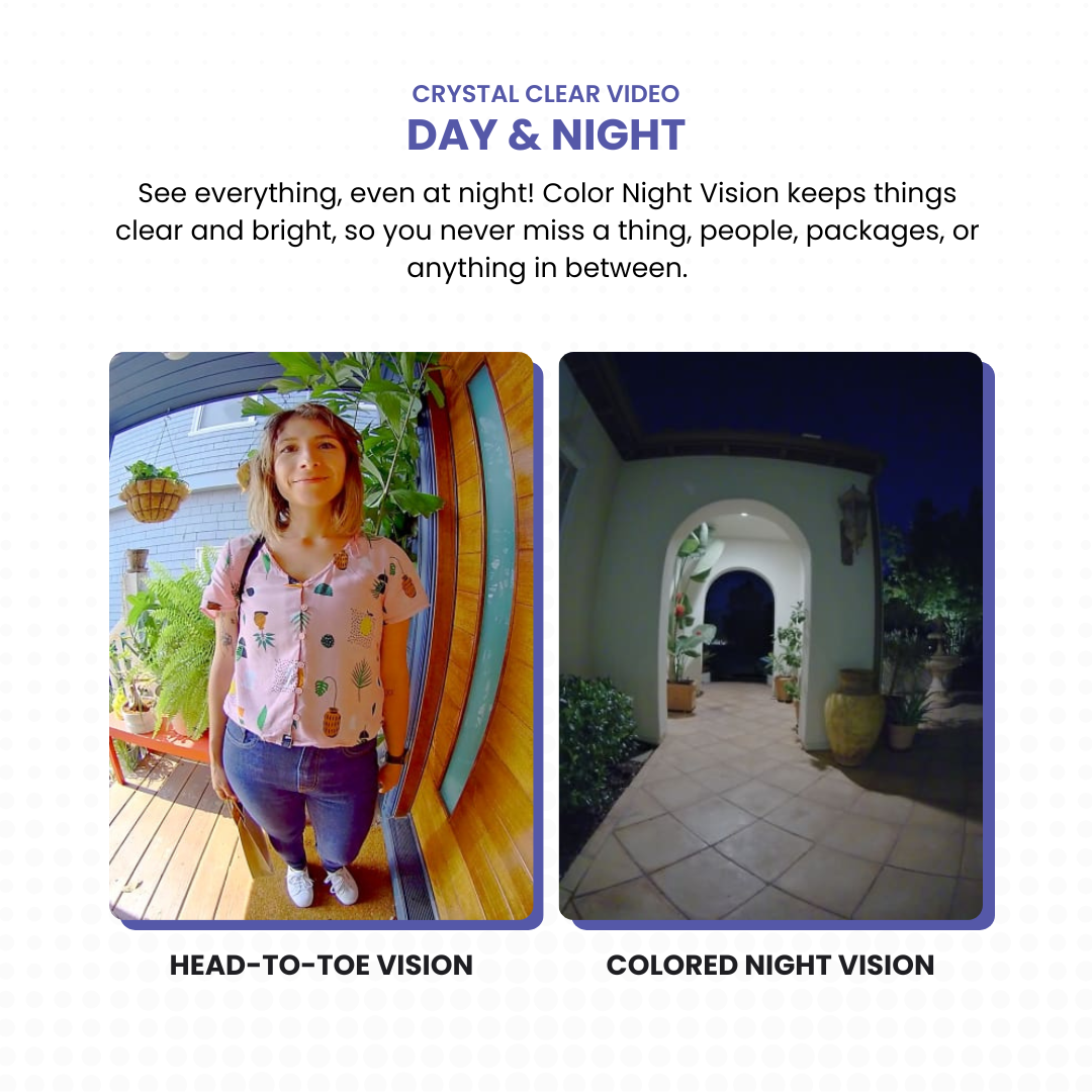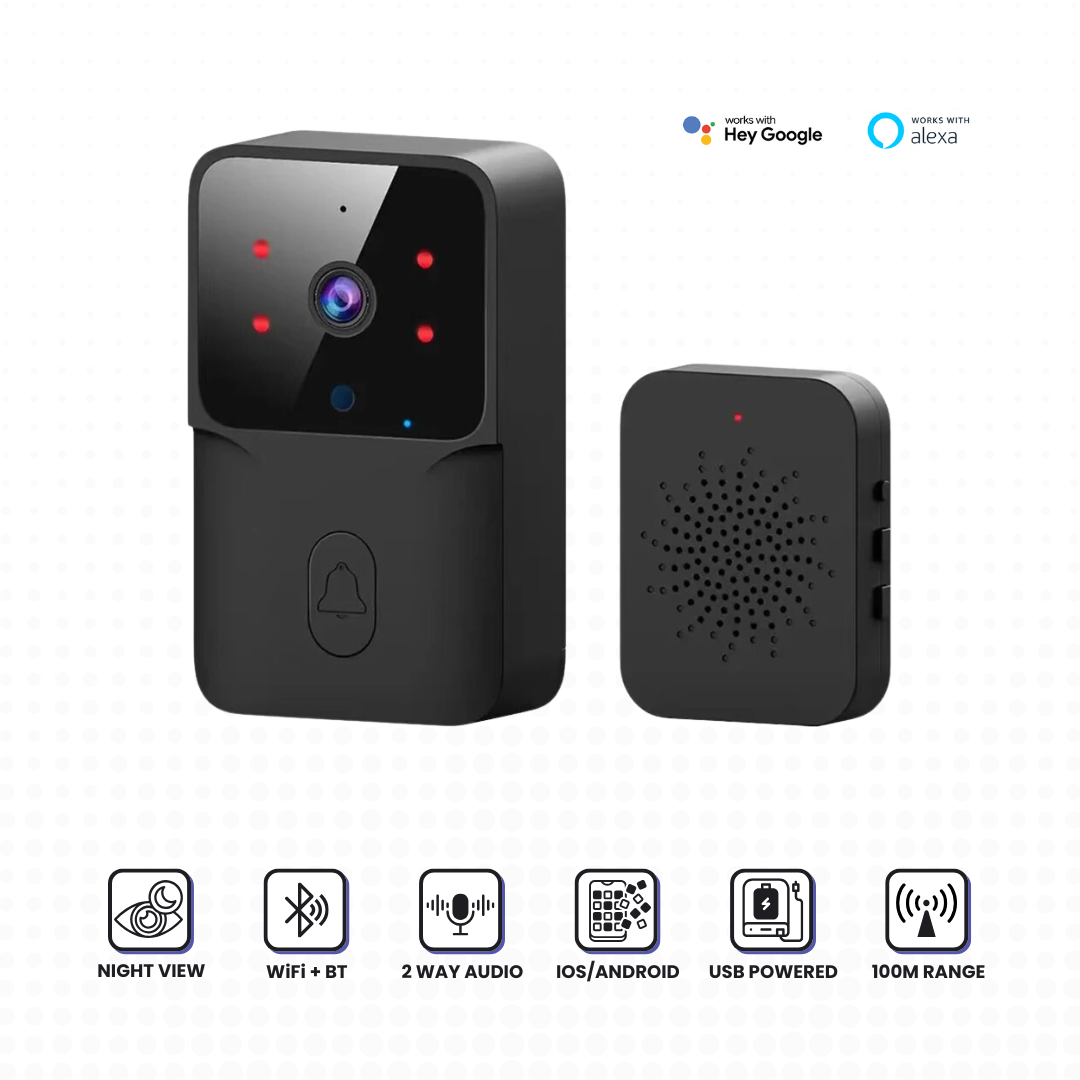 Oplev bekvemmeligheden ved en trådløs dørklokke med kamera, der giver dig ro i sindet og total kontrol over din hoveddør – uanset hvor du er! Med APP-fjernovervågning, tovejskommunikation og nattesyn kan du altid se, høre og tale med gæster direkte fra din smartphone.