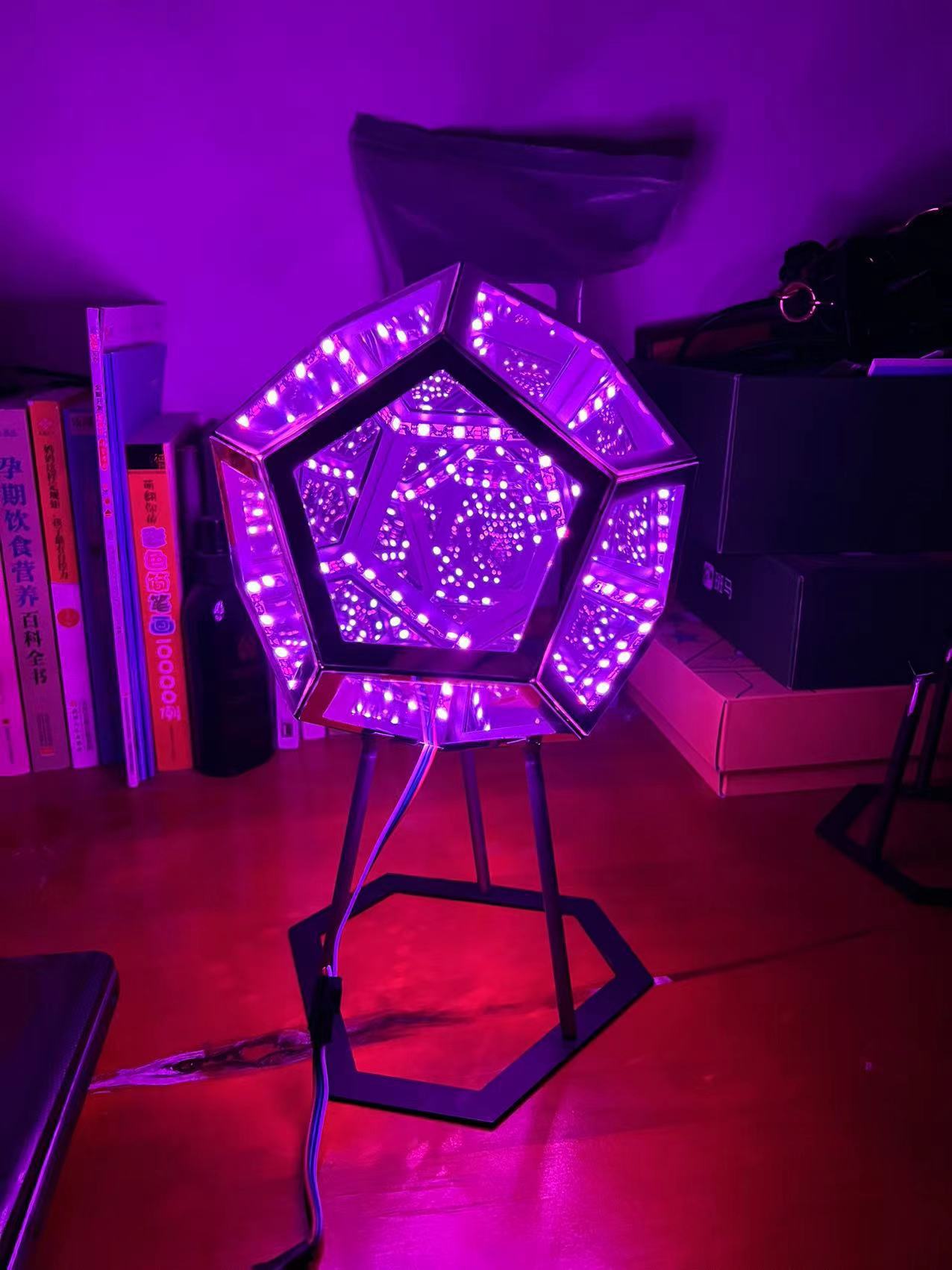 Vi introducerer den Aarhus ArtLight - Uendelig Dodekaeder Farve Kunst Lys der giver beskueren følelsen af at kigge ned i en endeløs afgrund af geometri og farver. Fuldt kontrollerbar via den medfølgende trådløse controller, og belysningen opdateres i realtid med fremtidige opdateringer, der udvider din enheds muligheder med yderligere belysningstilstande og integrationer.